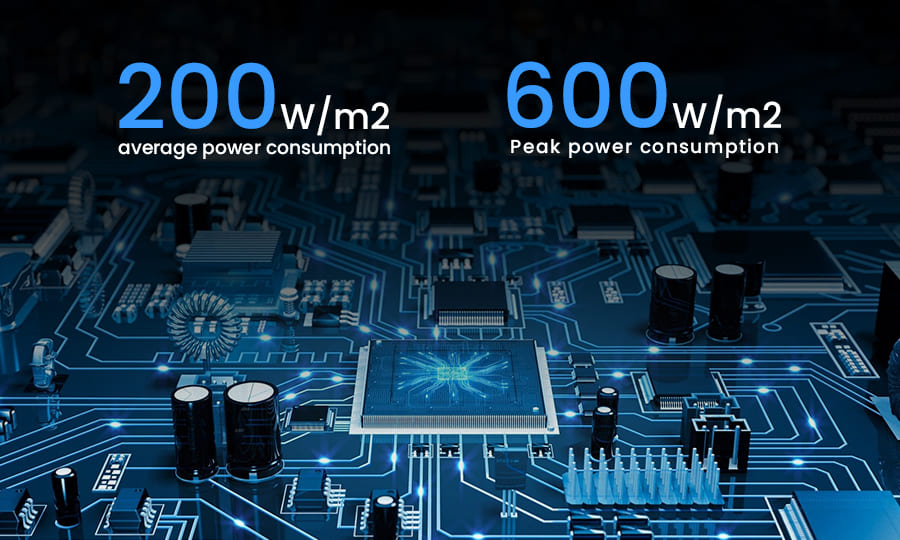 Average power consumption stands at a modest 200W/m², with a maximum of 600W/m², striking the perfect balance between luminance and efficiency.
