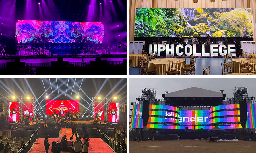 P2 LED screens are available in various standard panel sizes, providing versatility for different spatial configurations. The modular nature of these panels allows for full scalability—from small-scale boardroom displays, indoor events like weddings, parties to expansive screens for concert backdrops.