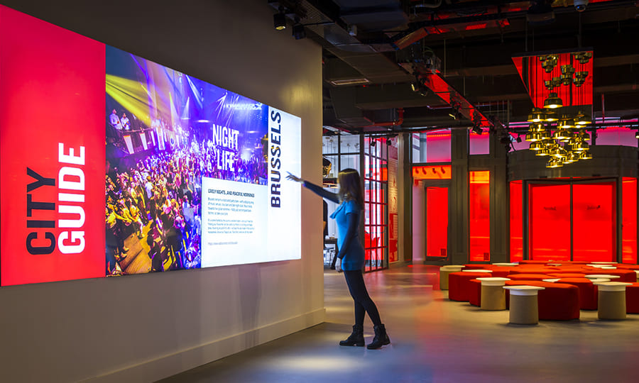 A P2 screen can transform a corporate lobby into a dynamic communication platform, impressing visitors with crisp, engaging content.