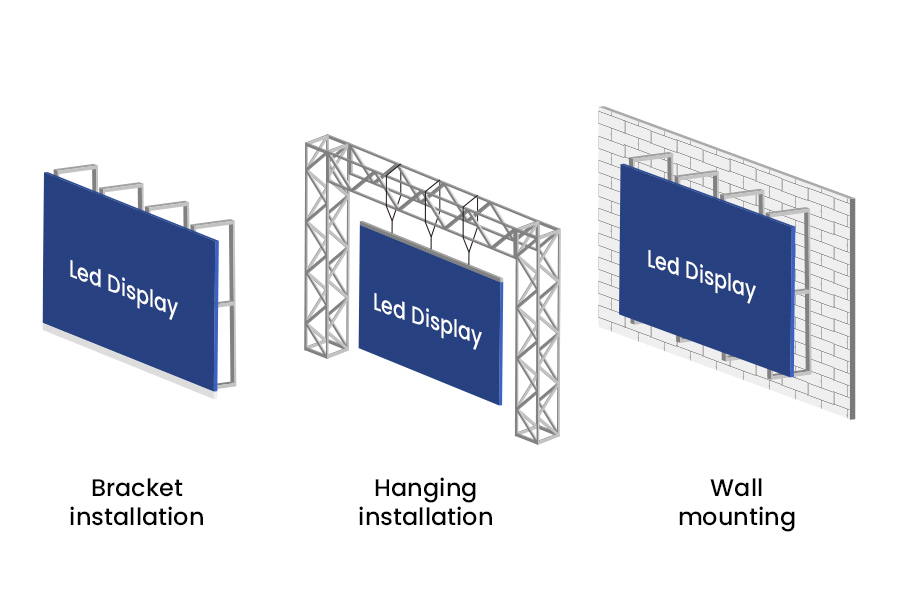 Hanging installation and bracket installation are suitable for temporary performances, such as music festivals or concerts, where the LED screens and brackets need to be dismantled after the event.