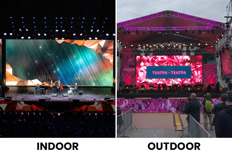 Generally, you can apply stage LED screens both indoors and outdoors.